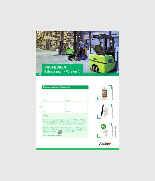 Unser Tipp: Kombinieren Sie den Einsatz dieses Prüfbogens mit dem Gabelstapler Prüfbogen Version B, um in der Prüfung die Gefahr des Abschreibens zu verringern.